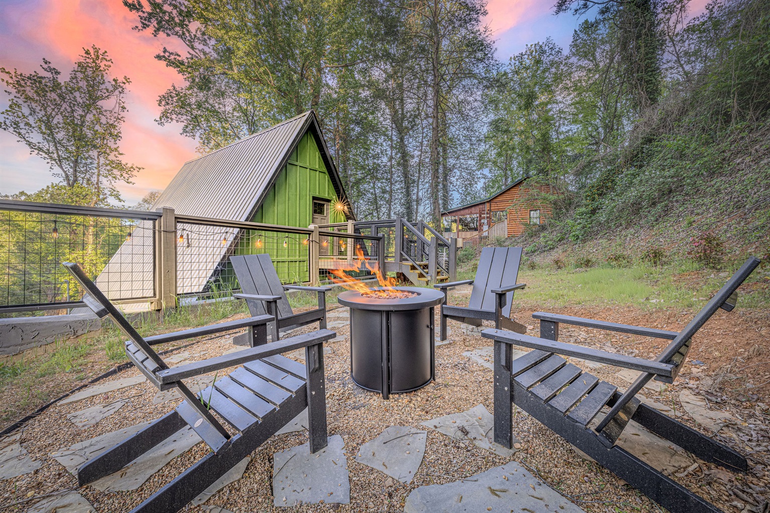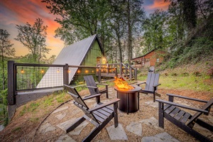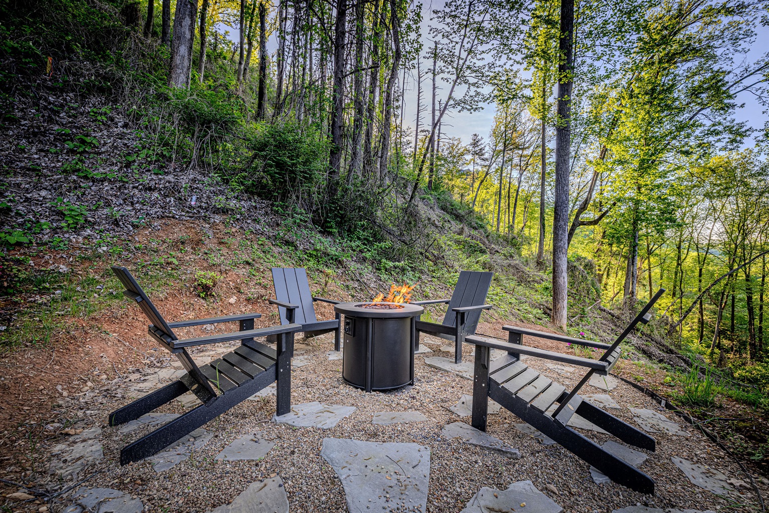 -Private outdoor firepit surrounded by trees — perfect for evenings under the stars