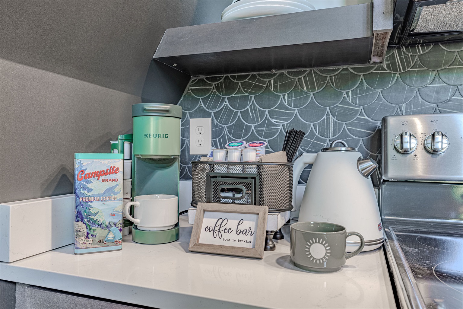 • Limited starter supply of toilet paper, paper towels, soap, trash bags, dishwasher detergent, and K-cups provided. Guests should plan to purchase additional supplies for longer stays.