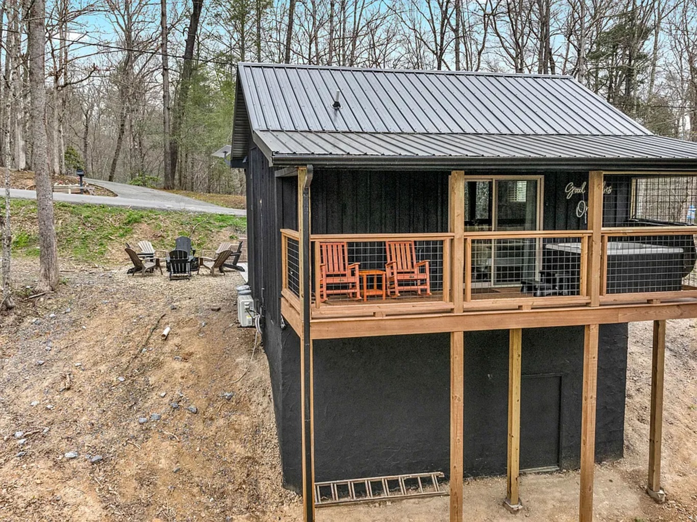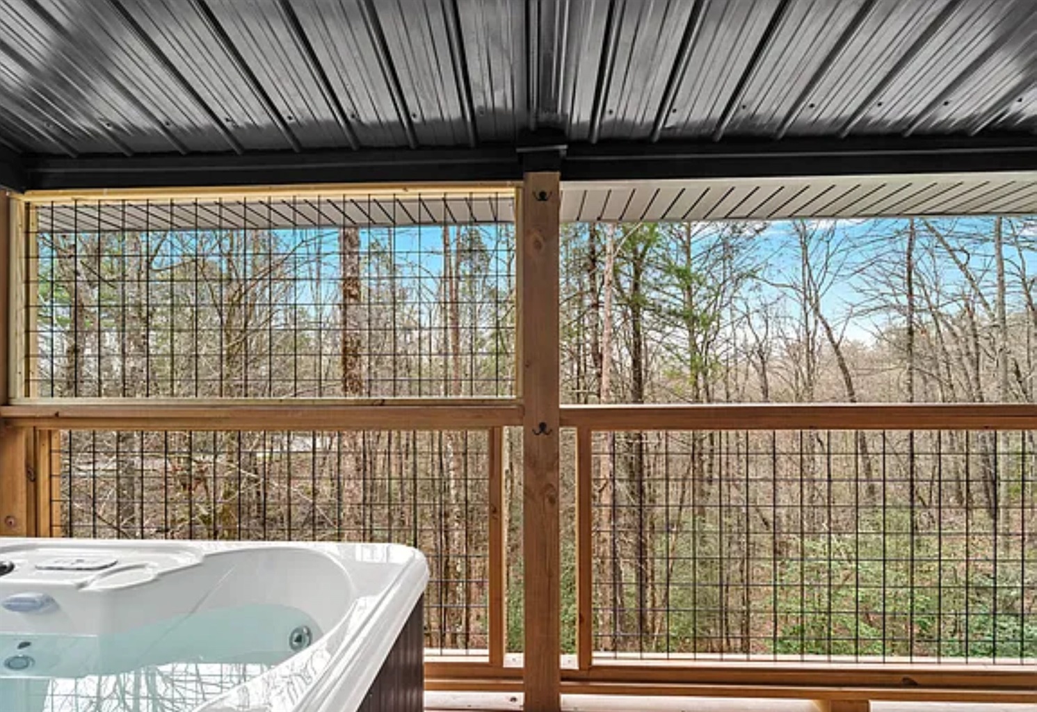 • Private hot tub surrounded by woods